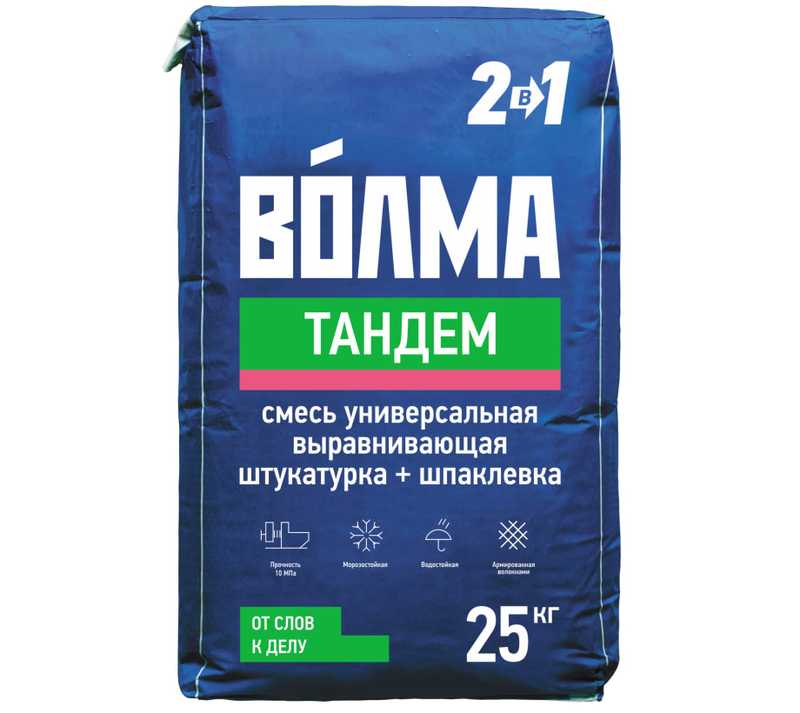 ГОСТ 31357-2007 «ВОЛМА-Тандем» - сухая цементная тонкослойная универсальная смесь для оштукатуривания и шпаклевания, трещиностойкая, армированная волокнами, для ручного и механизированного нанесения снаружи и внутри здания.